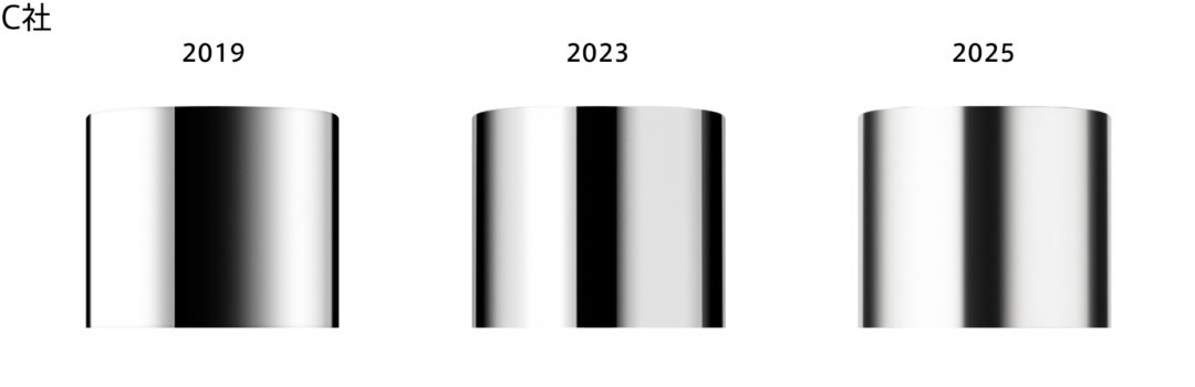 実際に各ブランドの表現と約5年の推移(2025年現在)を比較すると、同じキャップ表現でもブランドのイメージ戦略が込められていることがわかります。